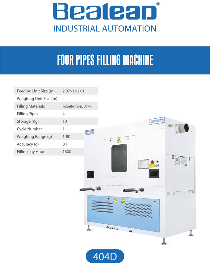 404D全自動(dòng)稱重棉絨一體機(jī),一臺(tái)機(jī)器同時(shí)滿足可充棉,珍珠棉,羽絨三種應(yīng)用需求。