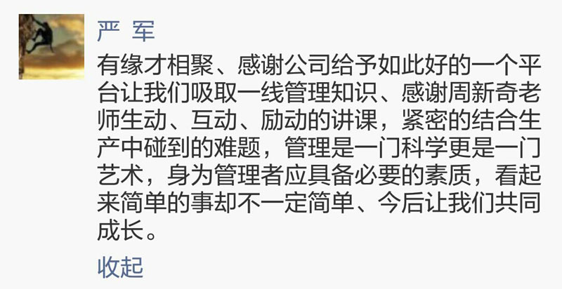 培訓(xùn)結(jié)束之后,參加培訓(xùn)的一線班組長們反應(yīng)熱烈,都表示收獲很多。今后,百聯(lián)還將繼續(xù)推進內(nèi)部提升,全員加油,促進企業(yè)持續(xù)發(fā)展。