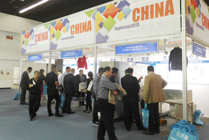 此后,百聯(lián)基本保持了每年都有新品上市或新市場開拓的節(jié)奏。2014年,百聯(lián)在羽絨服填充機型的基礎上推出了以1202B為代表的羽絨被充絨機,向家紡領域拓展,并首次在海外展會展示了自動充絨機,亮相越南、印度尼西亞和俄羅斯等國家的專業(yè)展會。2015年,百聯(lián)在常規(guī)參展的基礎上,首次登陸德國法蘭克福,在以技術展示為重點的專業(yè)展覽會上(Texprocess)向全球客戶展示了百聯(lián)自動充絨產品的實力。