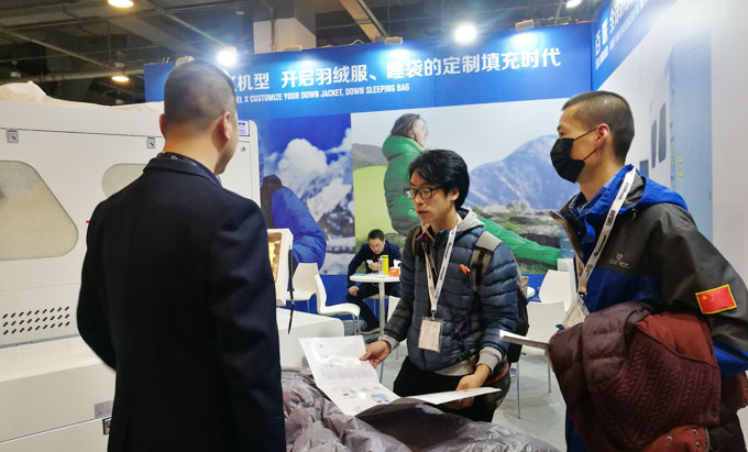 在ISPOBeijing 2018期間,百聯(lián)首次以參展商的身份亮相,展出了可滿足“羽絨服+睡袋”一體化生產(chǎn)需求的X模塊化定制機(jī)型,即在一臺機(jī)器上實現(xiàn)了羽絨服、睡袋兩種產(chǎn)品材料的同時填充,大幅提高了填充效率以及充絨機(jī)的應(yīng)用價值,得到了現(xiàn)場專業(yè)觀眾的好評。