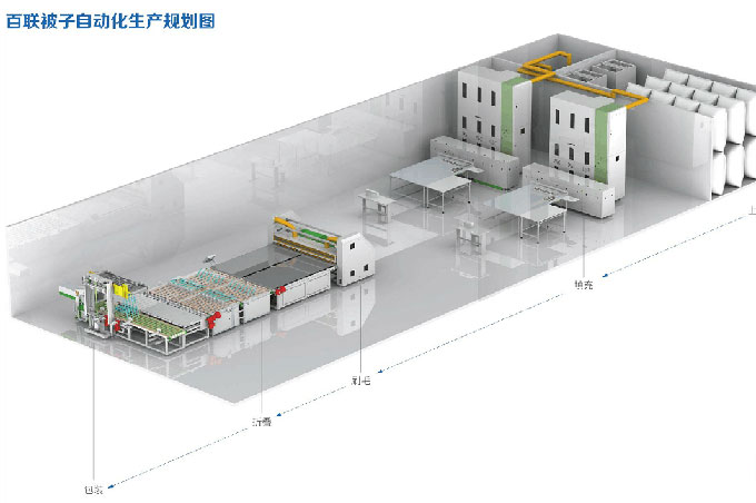百聯(lián)的家紡自動化解決方案,一方面在用工、生產(chǎn)效率、工作環(huán)境等方面極大地改善了用戶的生產(chǎn),另一方面又以精確均勻、蓬松美觀的纖維填充提升了羽絨被、棉被、枕芯等家紡產(chǎn)品的生產(chǎn)品質(zhì),滿足了消費市場日益增長的高品質(zhì)家紡產(chǎn)品需求。