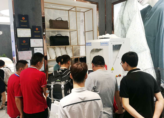 百聯(lián)受邀參展,重點展示了滿足門店定制需求的102B商超羽絨被充絨機?!耙淮脖蛔?分鐘就填充好了,成品效果也很好,不錯?!睂I(yè)用戶通過現(xiàn)場體驗102B商超羽絨被充絨機的性能表現(xiàn)加深了對該產(chǎn)品的認可。