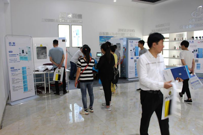 一場主題為“智能科技 共享未來”的新品見面會于5月16日至17日在山東省濟寧市汶上縣華儒電商園舉行。在活動現(xiàn)場,百聯(lián)與山東用戶就基于模塊化設計的2401X充絨機、402D雙口絨棉一體充絨機的功能、性能特點以及能幫助工廠實現(xiàn)大數(shù)據(jù)整合的IESD、IEBOX軟件系統(tǒng)展開了深入而有針對性的交流。
