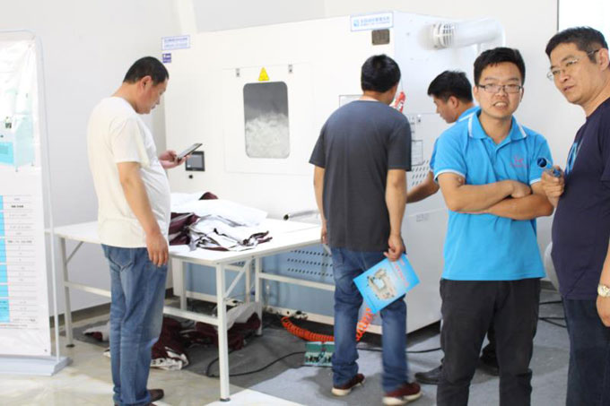 5月18日,百聯(lián)還在湖北武漢盤龍城佳海工業(yè)園首次向華中地區(qū)的客戶推介最新開發(fā)的4401X自動充絨機。