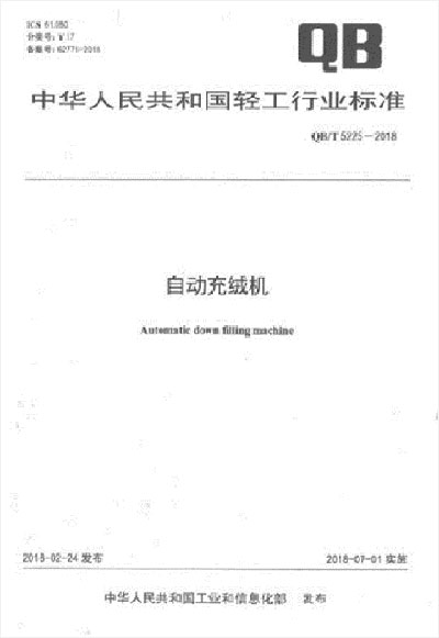 自2018年7月1日起,由百聯(lián)牽頭主起草的編號為QB/T5225-2018 號的“自動充絨機”行業(yè)推薦性標準正式實施了。該標準規(guī)定了自動充絨機的術語和定義、產(chǎn)品分類、要求、試驗方法、檢驗規(guī)則、標志、包裝、運輸和貯存,適用于自動充絨機,其他充填物的類似設備可參照執(zhí)行。