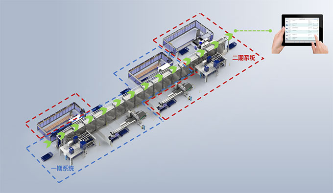 這三種設(shè)備連入可實(shí)現(xiàn)板材原材料的自動(dòng)化上、下料及板材和零件的存儲(chǔ)的自動(dòng)化料庫(kù),就構(gòu)成了一套完整的自動(dòng)化鈑金加工線。