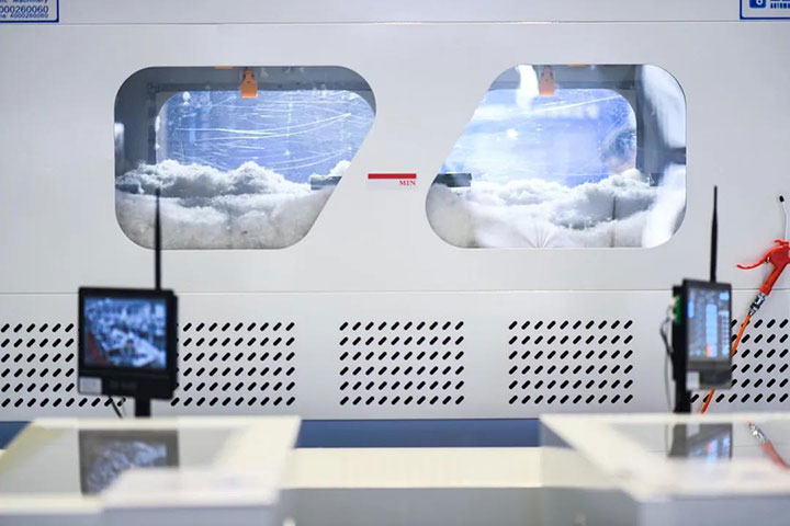 其中,402E全自動(dòng)稱重充棉機(jī)適用于各種纖維棉的填充,在省工、高效、環(huán)保以及減輕工人勞動(dòng)強(qiáng)度、提高生產(chǎn)精度和品質(zhì)等方面表現(xiàn)出色,其質(zhì)量及性能久經(jīng)市場檢驗(yàn),即使在當(dāng)下,仍是棉服生產(chǎn)企業(yè)的理想助手和高性價(jià)比之選。而全新優(yōu)化設(shè)計(jì)的DF-4604-X全自動(dòng)稱重絨棉一體機(jī),集成了桌下除塵、數(shù)據(jù)自動(dòng)導(dǎo)入、獨(dú)立稱重循環(huán)和大克重自動(dòng)分?jǐn)?、自?dòng)控制溫度、自動(dòng)回絨等多種功能,性能參數(shù)進(jìn)一步優(yōu)化,提升了充絨品質(zhì)并提高了羽絨原料的利用率、降低材料成本,還能根據(jù)用戶實(shí)際需要選配安卓電腦屏,實(shí)現(xiàn)機(jī)器數(shù)據(jù)與工廠數(shù)據(jù)軟件系統(tǒng)的直接對接,提高數(shù)據(jù)化處理水平。