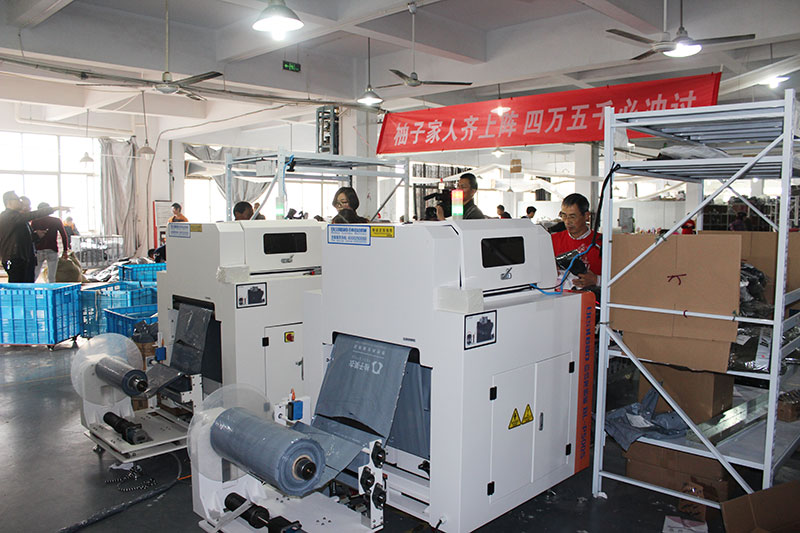 這是恒源祥第一次利用"打包神器"來處理海量的雙11訂單,實(shí)戰(zhàn)效果令人滿意。百聯(lián)發(fā)包機(jī)對(duì)接工廠ERP管理系統(tǒng),可即時(shí)打印面單,并根據(jù)商品的條形碼準(zhǔn)確貼面單,杜絕誤發(fā)商品的問題。在倉庫完成審單、揀貨等工作后,工人們就直接訂單商品放入百聯(lián)發(fā)包機(jī)自動(dòng)打開的快遞包裝袋中,由機(jī)器自動(dòng)開口、利用熱熔封口。上述步驟一氣呵成,完成一個(gè)包裹所需時(shí)間不過六七秒。