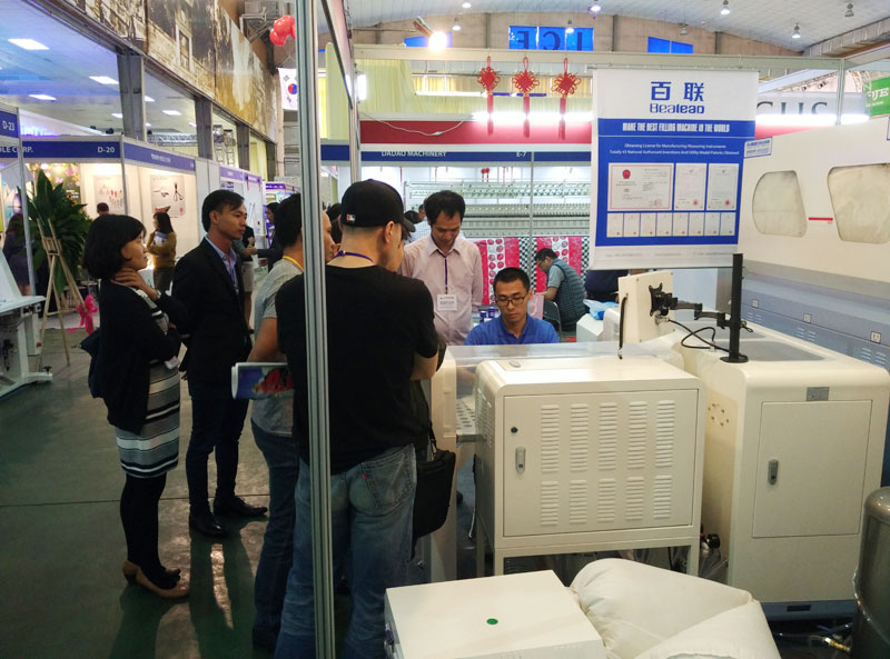 經(jīng)過幾年的市場培育,以越南為代表的東南亞市場客戶對百聯(lián)品牌及其產(chǎn)品的認可度顯著提高,其中不少客戶來自歐美、日韓等,在東南亞設(shè)廠??蛻粽J為,百聯(lián)充絨機“性能穩(wěn)定、智能高效,是客戶生產(chǎn)的得力助手”。此次展會期間,百聯(lián)的818B-S、2301型自動充絨機以及402B充棉機等系列產(chǎn)品以高品質(zhì)、優(yōu)性能得到了客戶的認可,展會期間現(xiàn)場簽約2臺818B-S,并達成了多種機型合計16臺的意向訂單.