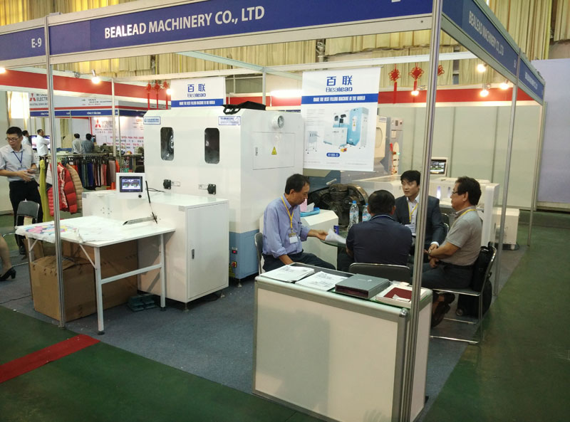 展會期間,百聯(lián)攜818B-S帶加速器高性能自動充絨機、402B全自動稱重充棉機、2301高性能雙口自動充絨機參展,許多新老客戶蒞臨百聯(lián)展位咨詢新產(chǎn)品詳情。
