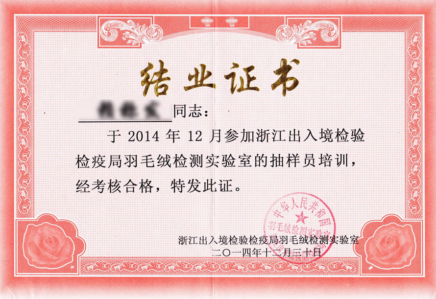 我們有專業(yè)抽樣師在羽絨包裝的上中下位置分別取樣,對(duì)于捆包和積壓包有專門的抽樣動(dòng)作防止絨朵損傷。專業(yè)化抽樣合格后,將這些樣品充分混勻再抽樣,送到權(quán)威的檢測機(jī)構(gòu)檢驗(yàn)。