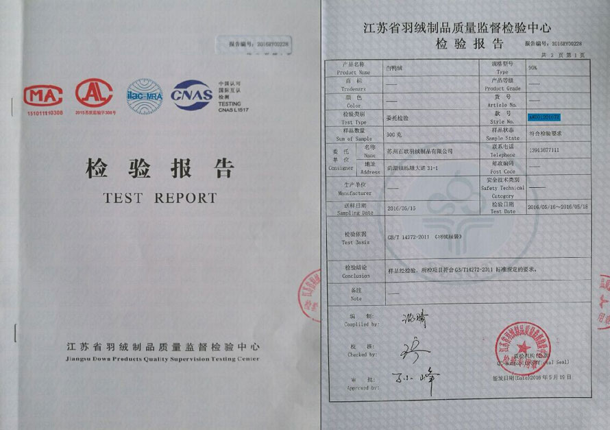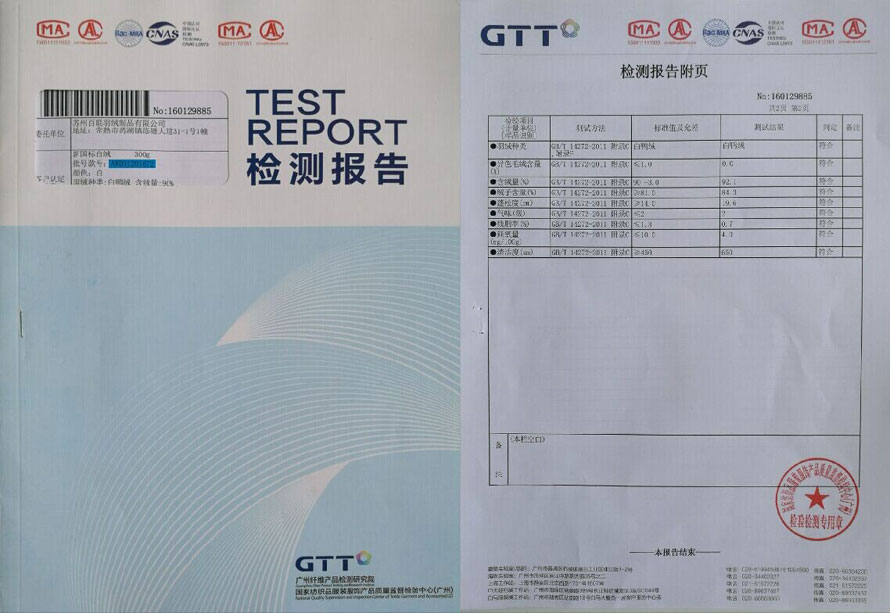 百聯(lián)分別委托江蘇省羽絨制品質(zhì)量監(jiān)督檢驗(yàn)中心、廣州纖維產(chǎn)品檢測研究院檢測并出具報(bào)告。只有兩份報(bào)告同時(shí)合格后才會(huì)入庫;