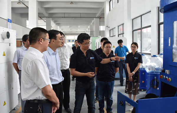 在調(diào)研參觀期間,市委書記一行參觀了百聯(lián)的生產(chǎn)、裝配車間以及成品倉庫,對百聯(lián)自主研發(fā)的應(yīng)用于服裝行業(yè)的全自動稱重充絨機(jī)、充棉機(jī),家紡行業(yè)的全自動羽絨被充絨機(jī),玩偶行業(yè)的全自動充填機(jī)以及電商行業(yè)自動發(fā)貨包裝機(jī)等“耳目一新”的產(chǎn)品進(jìn)行了解,還參觀了公司研發(fā)部,并在演示間觀看了相關(guān)產(chǎn)品的視頻,深入了解產(chǎn)品特性及海內(nèi)外市場情況。